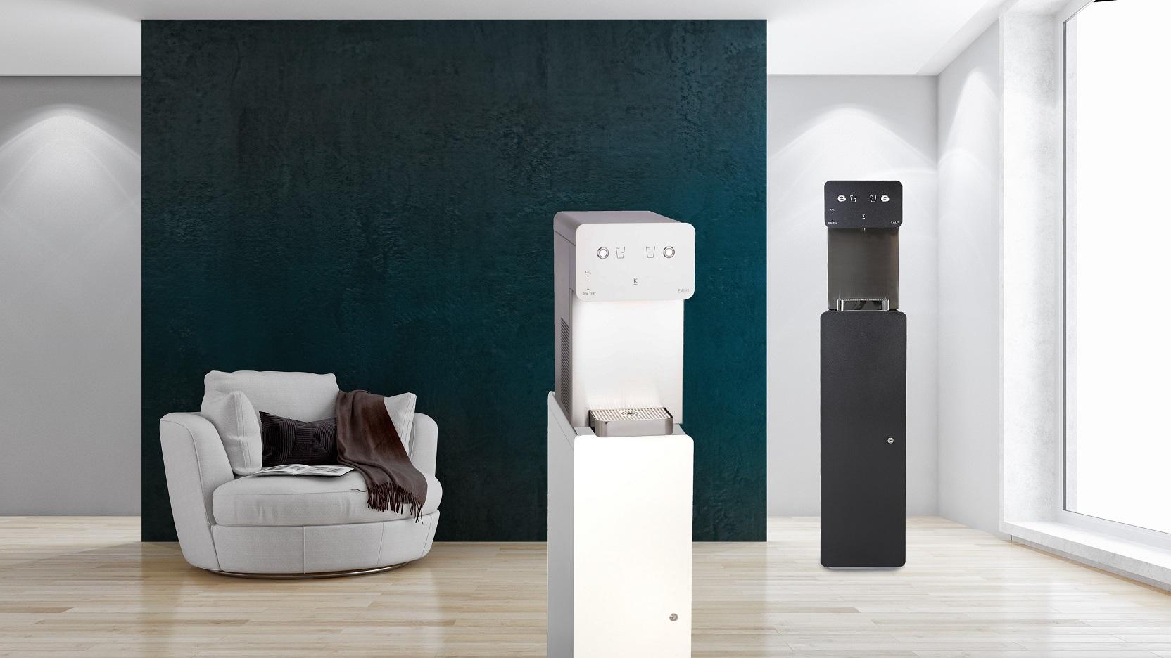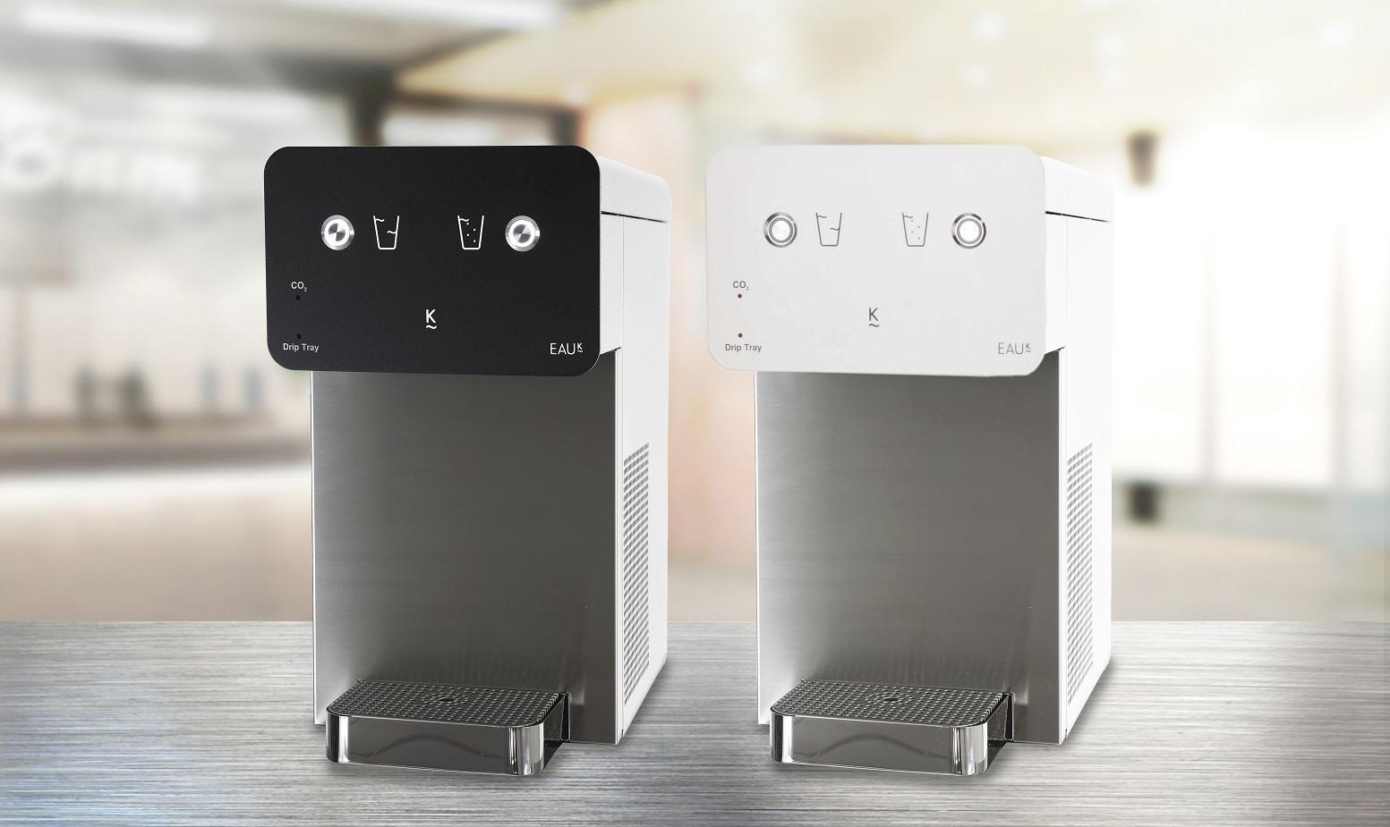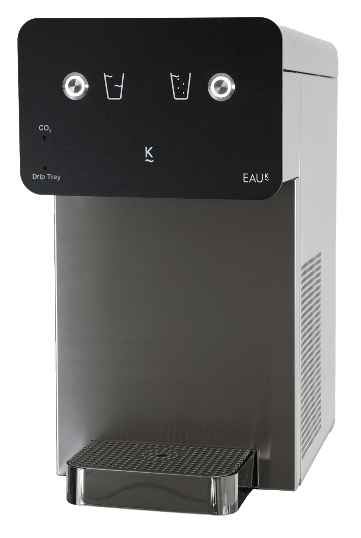 Zu einer Kaffeemaschine ist ein moderner Wasserspender die ideale Ergänzung. Immer frisches Wasser einfach auf Knopfdruck. Ein toller Service für Mitarbeiter, Kunden und Besucher. Der EAU~K One ist wahlweise in weißer oder schwarzer Frontoptik erhältlich. Ein Design so klar wie Wasser.